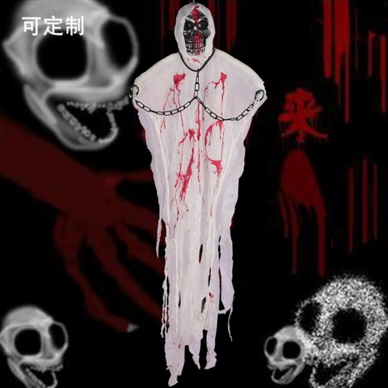 The 2025 Latest Voice Control Ghost Pendant is a terrifying Halloween decoration featuring glowing eyes, haunting voice activation, and a chilling iron chain design. Ideal for haunted houses, bars, and spooky scenes, this wholesale-friendly hanging ghost pendant adds immersive horror to any Halloween event.