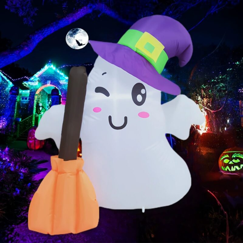 2025 Latest Inflatable Ghost with Broom for Halloween Decor