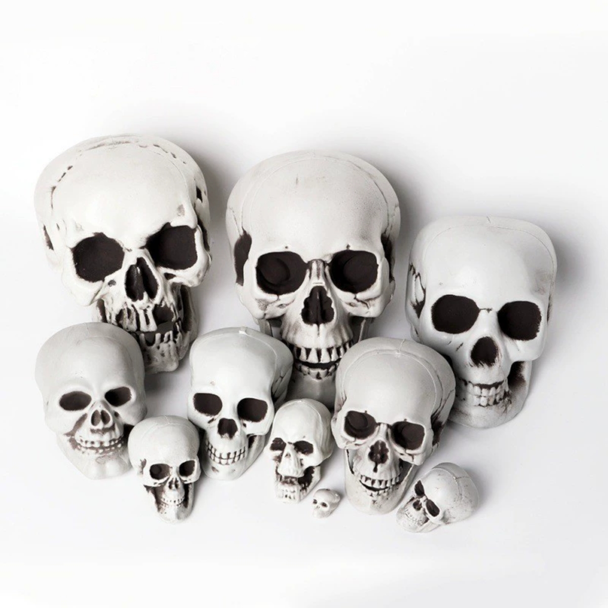 Using horror skull props is simple yet highly effective. You can position them on tabletops, in dark corners, or even outdoors to create a sinister graveyard look. Pair them with flickering candles, cobwebs, and dim lighting to enhance their frightening impact. These skulls work perfectly as centerpieces for parties, or as part of a larger Halloween decoration theme. Their versatility allows them to be used in creative ways—from placing them on shelves as eerie display pieces to scattering them across the floor for a terrifying “bones everywhere” effect.