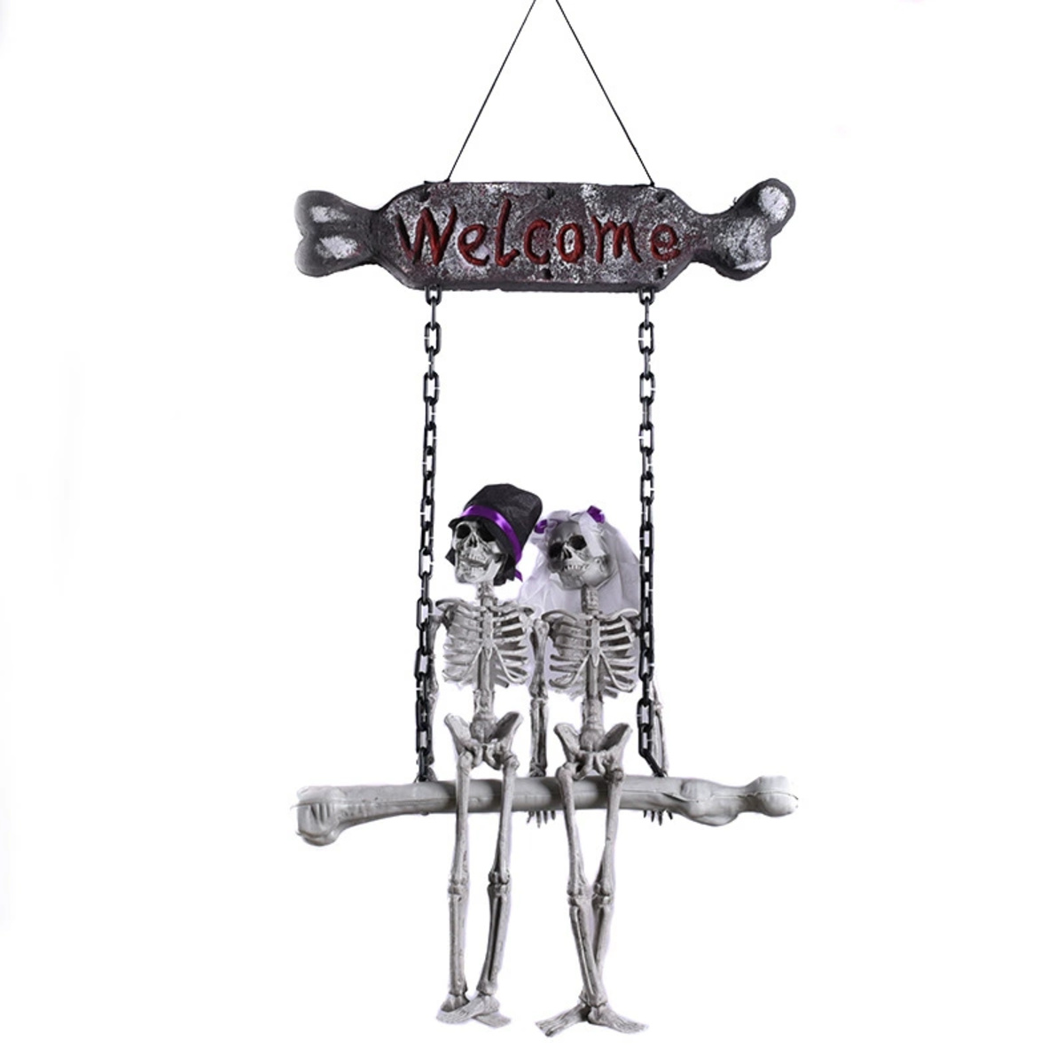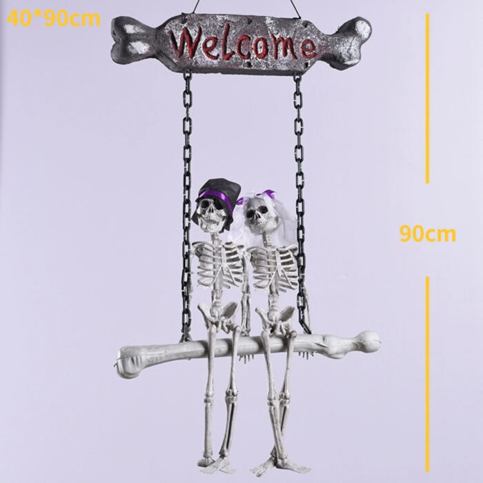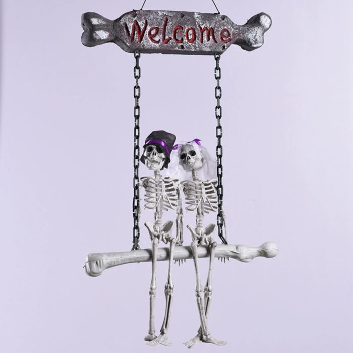 Transform your front door into a spine-chilling spectacle this Halloween with the Scary Skeleton Welcome Doorplate Pendant featuring a hauntingly beautiful bride and groom duo. Crafted to add both fright and charm to your haunted home, this spooky pendant becomes the perfect conversation starter for every Halloween enthusiast. Whether you’re throwing a ghostly bash or simply love decorating with dark flair, this skeleton couple welcome sign brings terrifying joy to all who pass through your doorway. Know more..